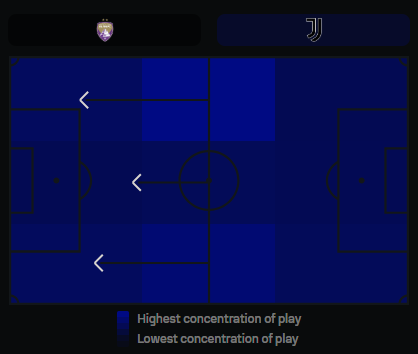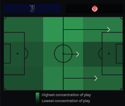 Even at this early stage, Juventus already demonstrates a concrete approach: central build-up with sustained possession, followed by exploiting the flanks to finish plays.
